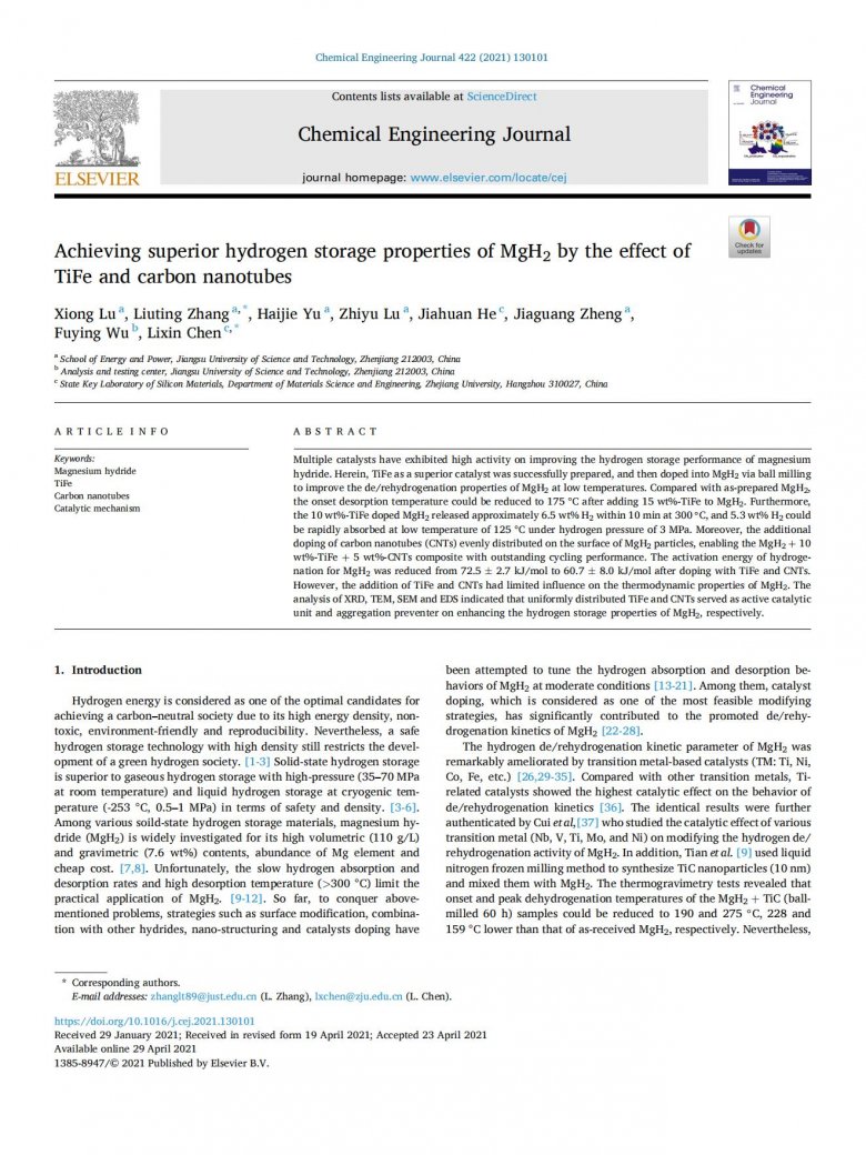 Achieving superior hydrogen storage properties of MgH2 by the effect of TiFe and carbon nanotubes